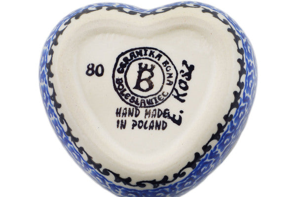 This Front Porch Blooms 4" Heart Shaped Jar was handmade and hand decorated in Boleslawiec, Poland by skilled artisans according to old traditional methods. This Polish stoneware is microwave, dishwasher, freezer, and oven safe up to 480°F. It does not contain lead or cadmium. It is part of the Front Porch Blooms Collection.