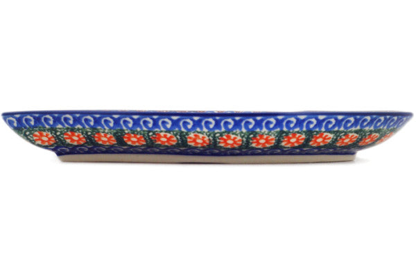 This Dancing Blue Poppies 9" Heart Shaped Platter was handmade and hand decorated in Boleslawiec, Poland by skilled artisans according to old traditional methods. This is a Polish pottery Signature Unikat, which means that it has been hand painted with both sponges and brushes and it is signed by the artist who painted it. Unikat pieces are the most intricate works of art. Larger Unikat items take hours of very careful work to finish. This Polish stoneware is microwave, dishwasher, freezer, and oven safe up to 480°F. It does not contain lead or cadmium. It is part of the Dancing Blue Poppies Collection.