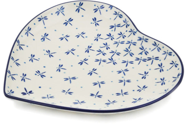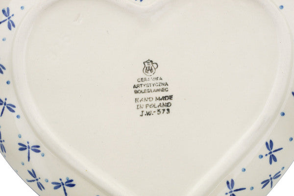 This Flying Dragonflies 9" Heart Shaped Platter was handmade and hand decorated in Boleslawiec, Poland by skilled artisans according to old traditional methods. This Polish stoneware is microwave, dishwasher, freezer, and oven safe up to 480°F. It does not contain lead or cadmium. It is part of the Flying Dragonflies Collection.