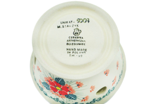 This Pink Forget Me Not 4" Heater was handmade and hand decorated in Boleslawiec, Poland by skilled artisans according to old traditional methods. This is a Polish pottery Signature Unikat, which means that it has been hand painted with both sponges and brushes and it is signed by the artist who painted it. Unikat pieces are the most intricate works of art. Larger Unikat items take hours of very careful work to finish. This Polish stoneware is microwave, dishwasher, freezer, and oven safe up to 480°F. It does not contain lead or cadmium. It is part of the Pink Forget Me Not Collection.