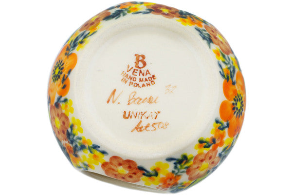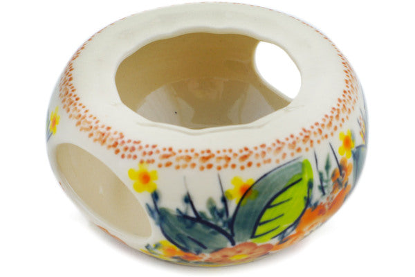 This Sunset Meadow 4" Heater was handmade and hand decorated in Boleslawiec, Poland by skilled artisans according to old traditional methods. This is a Polish pottery Signature Unikat, which means that it has been hand painted with both sponges and brushes and it is signed by the artist who painted it. Unikat pieces are the most intricate works of art. Larger Unikat items take hours of very careful work to finish. This Polish stoneware is microwave, dishwasher, freezer, and oven safe up to 480°F. It does not contain lead or cadmium. It is part of the Sunset Meadow Collection.