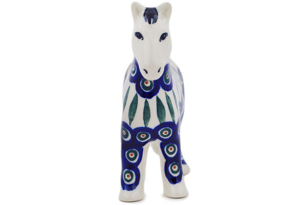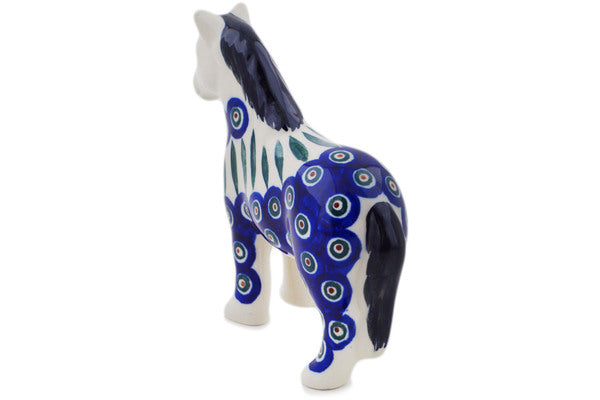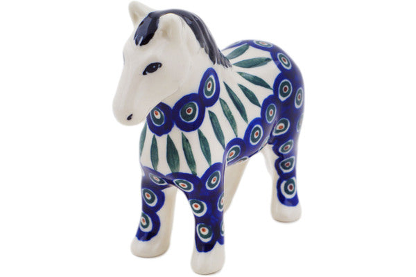 This Peacock Leaves 6" Horse Figurine was handmade and hand decorated in Boleslawiec, Poland by skilled artisans according to old traditional methods. This Polish stoneware is microwave, dishwasher, freezer, and oven safe up to 480°F. It does not contain lead or cadmium. It is part of the Peacock Leaves Collection.