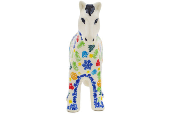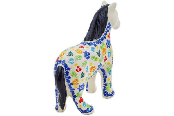 This Winter Sprinkles 6" Horse Figurine was handmade and hand decorated in Boleslawiec, Poland by skilled artisans according to old traditional methods. This is a Polish pottery Signature Unikat, which means that it has been hand painted with both sponges and brushes and it is signed by the artist who painted it. Unikat pieces are the most intricate works of art. Larger Unikat items take hours of very careful work to finish. This Polish stoneware is microwave, dishwasher, freezer, and oven safe up to 480°F. It does not contain lead or cadmium. It is part of the Winter Sprinkles Collection.