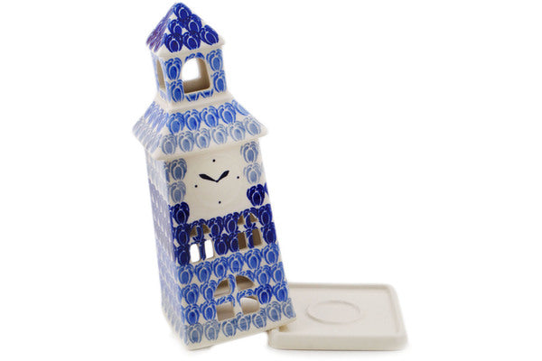 This Retro Blue Tulips 11" House Figurine was handmade and hand decorated in Boleslawiec, Poland by skilled artisans according to old traditional methods. This Polish stoneware is microwave, dishwasher, freezer, and oven safe up to 480°F. It does not contain lead or cadmium. It is part of the Retro Blue Tulips Collection.