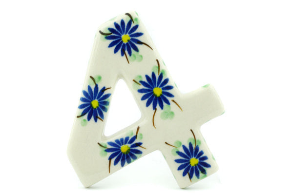 This Aster Trellis 4-inch House Number FOUR (4) was handmade and hand decorated in Boleslawiec, Poland by skilled artisans according to old traditional methods. This Polish stoneware is microwave, dishwasher, freezer, and oven safe up to 480°F. It does not contain lead or cadmium. It is part of the Aster Trellis Collection.