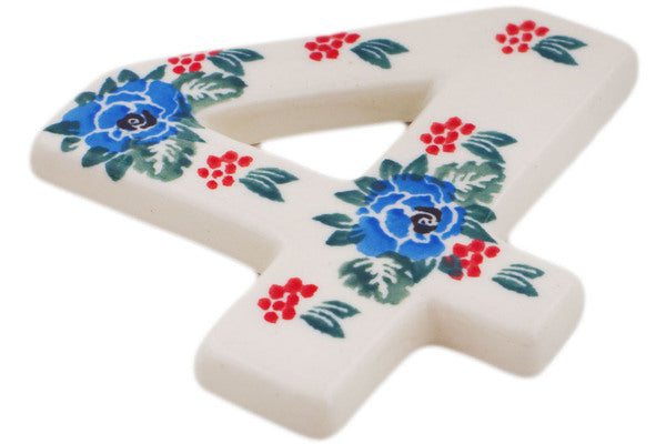 This Burst Of Color 4-inch House Number FOUR (4) was handmade and hand decorated in Boleslawiec, Poland by skilled artisans according to old traditional methods. This Polish stoneware is microwave, dishwasher, freezer, and oven safe up to 480°F. It does not contain lead or cadmium. It is part of the Burst Of Color Collection.