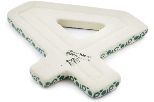 This Grecian Sea 4-inch House Number FOUR (4) was handmade and hand decorated in Boleslawiec, Poland by skilled artisans according to old traditional methods. This Polish stoneware is microwave, dishwasher, freezer, and oven safe up to 480°F. It does not contain lead or cadmium. It is part of the Grecian Sea Collection.