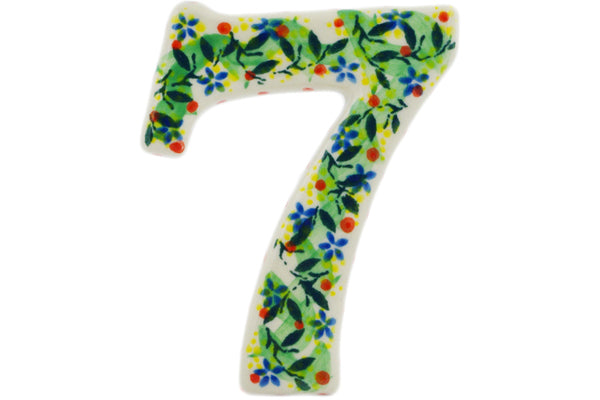 This Yellow Garden 4-inch House Number SEVEN (7) was handmade and hand decorated in Boleslawiec, Poland by skilled artisans according to old traditional methods. This is a Polish pottery Signature Unikat, which means that it has been hand painted with both sponges and brushes and it is signed by the artist who painted it. Unikat pieces are the most intricate works of art. Larger Unikat items take hours of very careful work to finish. This Polish stoneware is microwave, dishwasher, freezer, and oven safe up to 480°F. It does not contain lead or cadmium. It is part of the Yellow Garden Collection.