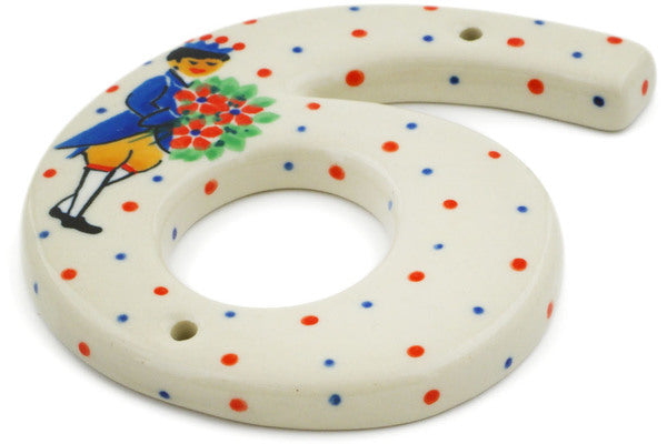 This Charming Prince 4-inch House Number Six (6) was handmade and hand decorated in Boleslawiec, Poland by skilled artisans according to old traditional methods. This is a Polish pottery Signature Unikat, which means that it has been hand painted with both sponges and brushes and it is signed by the artist who painted it. Unikat pieces are the most intricate works of art. Larger Unikat items take hours of very careful work to finish. This Polish stoneware is microwave, dishwasher, freezer, and oven safe up to 480°F. It does not contain lead or cadmium. It is part of the Charming Prince Collection.