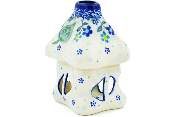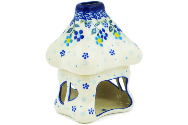 This Bluems 5" House Shaped Candle Holder was handmade and hand decorated in Boleslawiec, Poland by skilled artisans according to old traditional methods. This Polish stoneware is microwave, dishwasher, freezer, and oven safe up to 480°F. It does not contain lead or cadmium. It is part of the Bluems Collection.