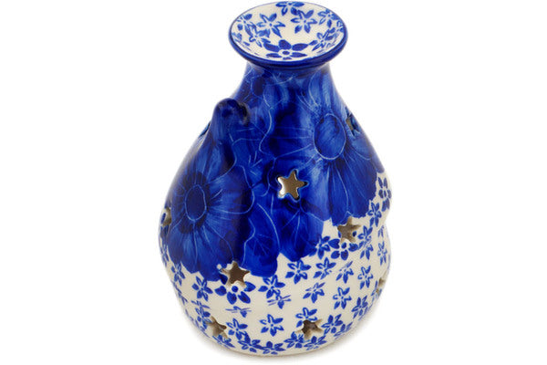 This Divine Cobalt 5" House Shaped Candle Holder was handmade and hand decorated in Boleslawiec, Poland by skilled artisans according to old traditional methods. This is a Polish pottery Signature Unikat, which means that it has been hand painted with both sponges and brushes and it is signed by the artist who painted it. Unikat pieces are the most intricate works of art. Larger Unikat items take hours of very careful work to finish. This Polish stoneware is microwave, dishwasher, freezer, and oven safe up to 480°F. It does not contain lead or cadmium. It is part of the Divine Cobalt Collection.