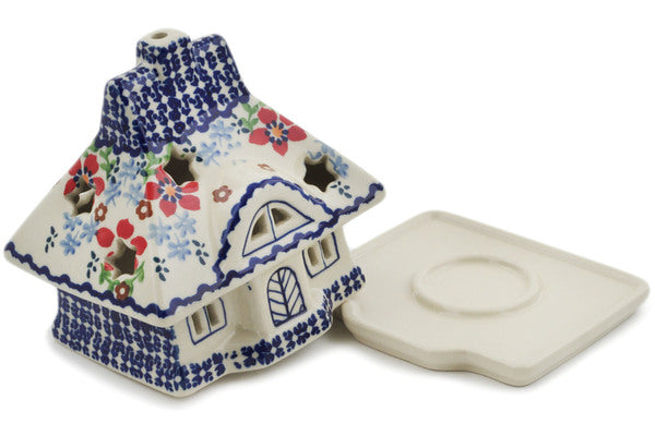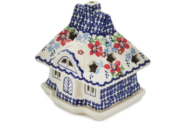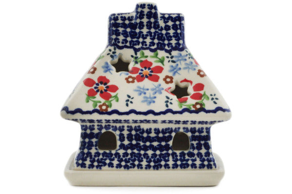 This Red Flower Meadow 5" House Shaped Candle Holder was handmade and hand decorated in Boleslawiec, Poland by skilled artisans according to old traditional methods. This Polish stoneware is microwave, dishwasher, freezer, and oven safe up to 480°F. It does not contain lead or cadmium. It is part of the Red Flower Meadow Collection.