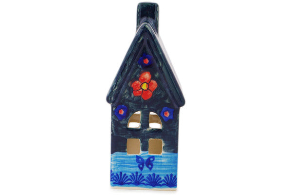 This Midnight Garden 6" House Shaped Candle Holder was handmade and hand decorated in Boleslawiec, Poland by skilled artisans according to old traditional methods. This is a Polish pottery Signature Unikat, which means that it has been hand painted with both sponges and brushes and it is signed by the artist who painted it. Unikat pieces are the most intricate works of art. Larger Unikat items take hours of very careful work to finish. This Polish stoneware is microwave, dishwasher, freezer, and oven safe up to 480°F. It does not contain lead or cadmium. It is part of the Midnight Garden Collection.