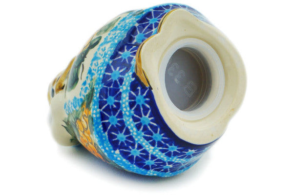 This Corn In The Blue 6" Piggy Bank Housekeeper was handmade and hand decorated in Boleslawiec, Poland by skilled artisans according to old traditional methods. This is a Polish pottery Signature Unikat, which means that it has been hand painted with both sponges and brushes and it is signed by the artist who painted it. Unikat pieces are the most intricate works of art. Larger Unikat items take hours of very careful work to finish. This Polish stoneware is microwave, dishwasher, freezer, and oven safe up to 480°F. It does not contain lead or cadmium. It is part of the Corn In The Blue Collection.
