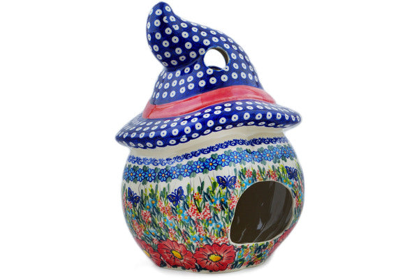 This Red Hibiscus 14" Jack O Lantern Candle Holder was handmade and hand decorated in Boleslawiec, Poland by skilled artisans according to old traditional methods. This is a Polish pottery Signature Unikat, which means that it has been hand painted with both sponges and brushes and it is signed by the artist who painted it. Unikat pieces are the most intricate works of art. Larger Unikat items take hours of very careful work to finish. This Polish stoneware is microwave, dishwasher, freezer, and oven safe up to 480°F. It does not contain lead or cadmium. It is part of the Red Hibiscus Collection.