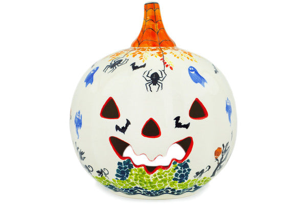 This Halloween Day 9" Jack O Lantern Candle Holder was handmade and hand decorated in Boleslawiec, Poland by skilled artisans according to old traditional methods. This Polish stoneware is microwave, dishwasher, freezer, and oven safe up to 480°F. It does not contain lead or cadmium. It is part of the Halloween Day Collection.