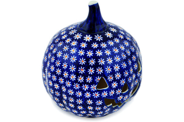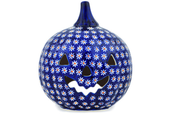This Water Daisy 9" Jack O Lantern Candle Holder was handmade and hand decorated in Boleslawiec, Poland by skilled artisans according to old traditional methods. This Polish stoneware is microwave, dishwasher, freezer, and oven safe up to 480°F. It does not contain lead or cadmium. It is part of the Water Daisy Collection.