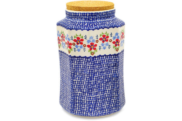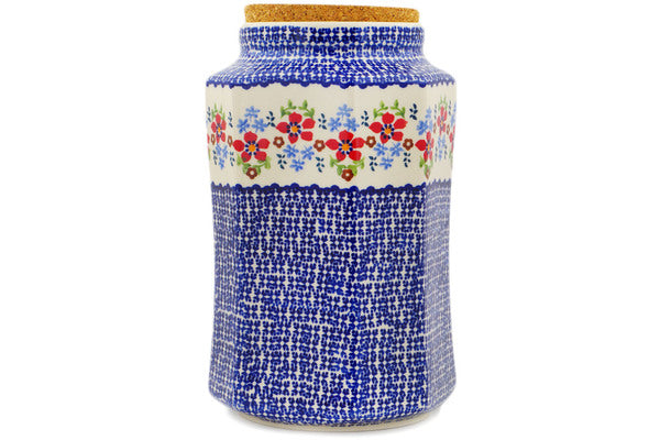 This Red Flower Meadow 10" Jar with Lid was handmade and hand decorated in Boleslawiec, Poland by skilled artisans according to old traditional methods. This Polish stoneware is microwave, dishwasher, freezer, and oven safe up to 480°F. It does not contain lead or cadmium. It is part of the Red Flower Meadow Collection.