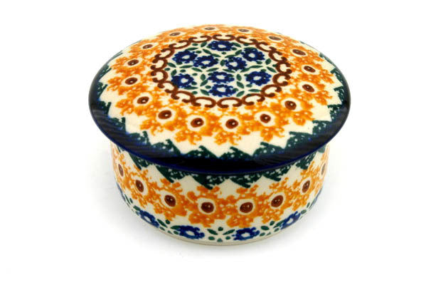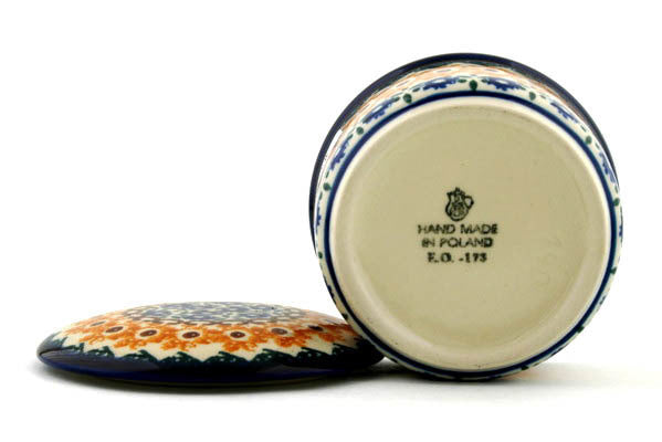 This Sunshine Field 4" Jar with Lid was handmade and hand decorated in Boleslawiec, Poland by skilled artisans according to old traditional methods. This Polish stoneware is microwave, dishwasher, freezer, and oven safe up to 480°F. It does not contain lead or cadmium. It is part of the Sunshine Field Collection.