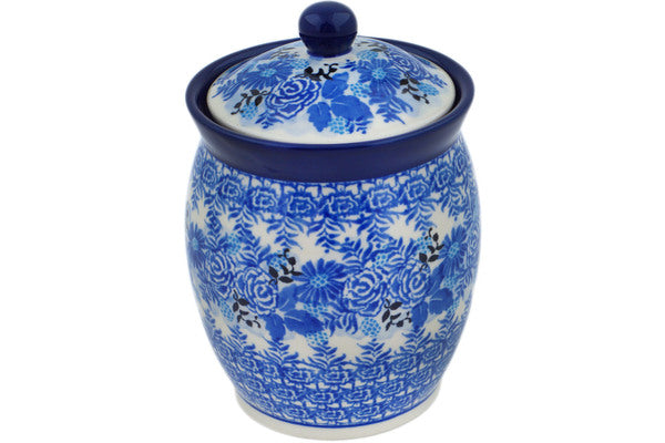 This Frosted Bouquet 5" Jar with Lid was handmade and hand decorated in Boleslawiec, Poland by skilled artisans according to old traditional methods. This is a Polish pottery Signature Unikat, which means that it has been hand painted with both sponges and brushes and it is signed by the artist who painted it. Unikat pieces are the most intricate works of art. Larger Unikat items take hours of very careful work to finish. This Polish stoneware is microwave, dishwasher, freezer, and oven safe up to 480°F. It does not contain lead or cadmium. It is part of the Frosted Bouquet Collection.