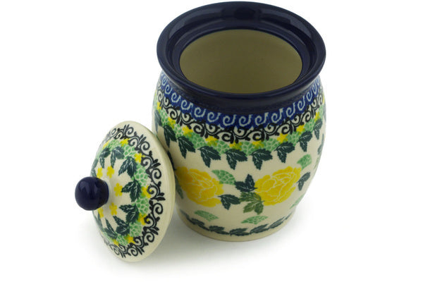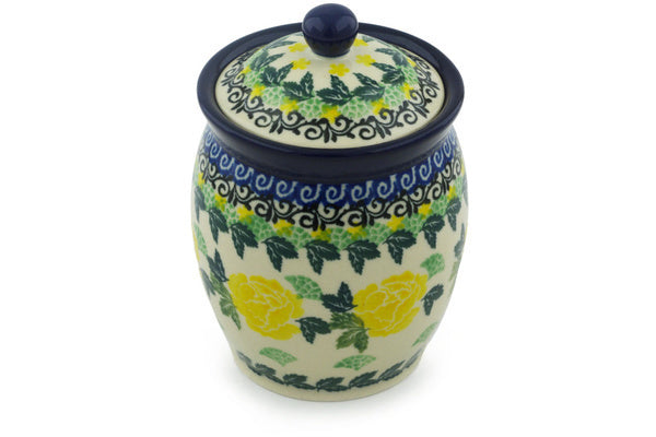This Yellow Rose 5" Jar with Lid was handmade and hand decorated in Boleslawiec, Poland by skilled artisans according to old traditional methods. This Polish stoneware is microwave, dishwasher, freezer, and oven safe up to 480°F. It does not contain lead or cadmium. It is part of the Yellow Rose Collection.