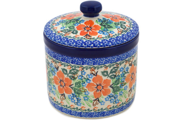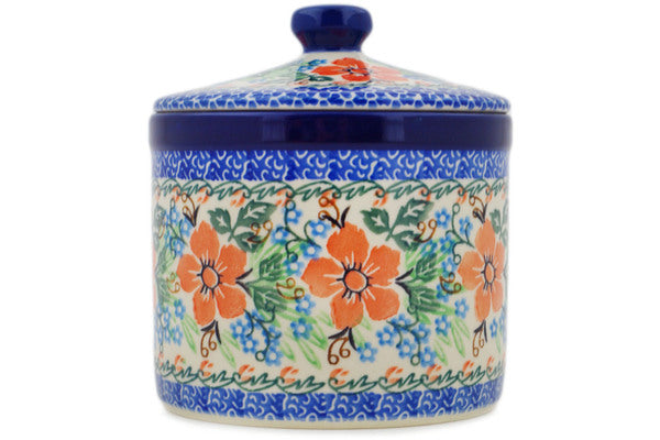 This Brilliant Pansy 6" Jar with Lid was handmade and hand decorated in Boleslawiec, Poland by skilled artisans according to old traditional methods. This is a Polish pottery Signature Unikat, which means that it has been hand painted with both sponges and brushes and it is signed by the artist who painted it. Unikat pieces are the most intricate works of art. Larger Unikat items take hours of very careful work to finish. This Polish stoneware is microwave, dishwasher, freezer, and oven safe up to 480°F. It does not contain lead or cadmium. It is part of the Brilliant Pansy Collection.