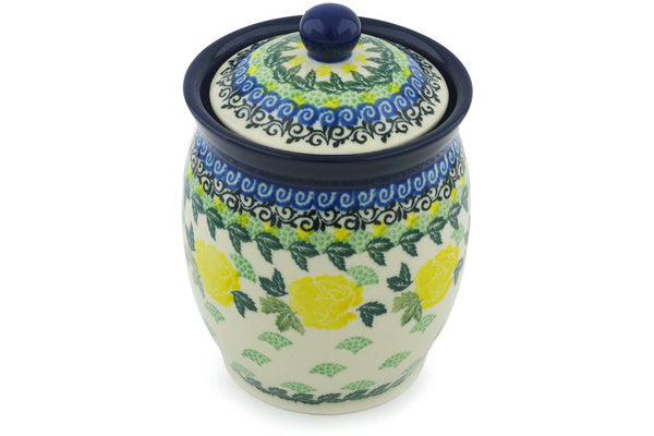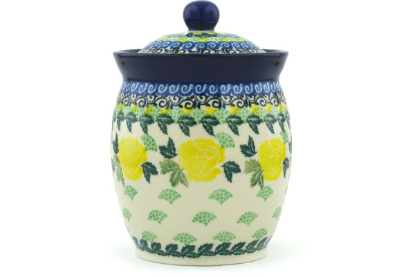 This Yellow Rose 6" Jar with Lid was handmade and hand decorated in Boleslawiec, Poland by skilled artisans according to old traditional methods. This Polish stoneware is microwave, dishwasher, freezer, and oven safe up to 480°F. It does not contain lead or cadmium. It is part of the Yellow Rose Collection.