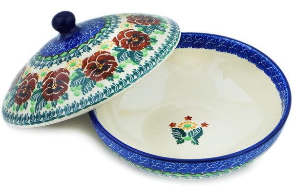 This Brown Pansy 7" Jar with Lid was handmade and hand decorated in Boleslawiec, Poland by skilled artisans according to old traditional methods. This is a Polish pottery Signature Unikat, which means that it has been hand painted with both sponges and brushes and it is signed by the artist who painted it. Unikat pieces are the most intricate works of art. Larger Unikat items take hours of very careful work to finish. This Polish stoneware is microwave, dishwasher, freezer, and oven safe up to 480°F. It does not contain lead or cadmium. It is part of the Brown Pansy Collection.