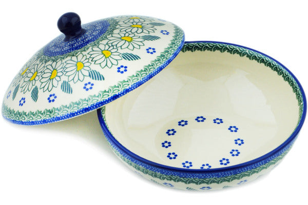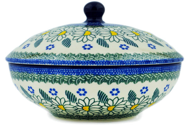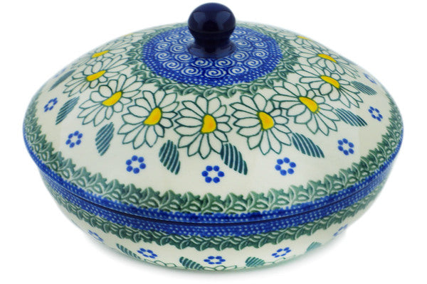 This Crazy Daisy 7" Jar with Lid was handmade and hand decorated in Boleslawiec, Poland by skilled artisans according to old traditional methods. This Polish stoneware is microwave, dishwasher, freezer, and oven safe up to 480°F. It does not contain lead or cadmium. It is part of the Crazy Daisy Collection.