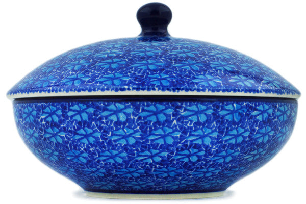 This Deep Into The Blue Sea 7" Jar with Lid was handmade and hand decorated in Boleslawiec, Poland by skilled artisans according to old traditional methods. This Polish stoneware is microwave, dishwasher, freezer, and oven safe up to 480°F. It does not contain lead or cadmium. It is part of the Deep Into The Blue Sea Collection.