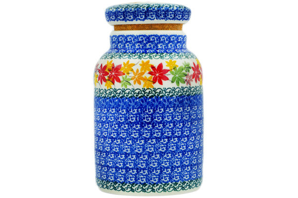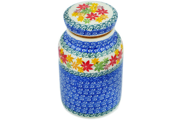 This Fall Vibes 7" Jar with Lid was handmade and hand decorated in Boleslawiec, Poland by skilled artisans according to old traditional methods. This Polish stoneware is microwave, dishwasher, freezer, and oven safe up to 480°F. It does not contain lead or cadmium. It is part of the Fall Vibes Collection.