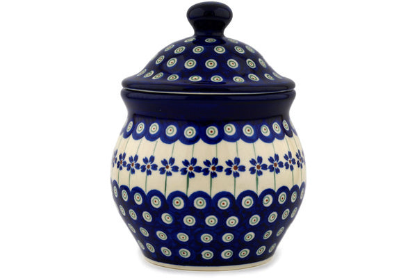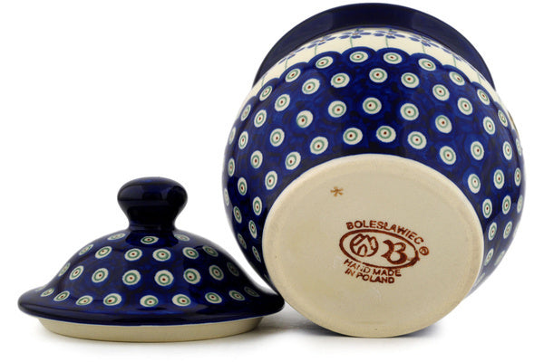 This Flowering Peacock 7" Jar with Lid was handmade and hand decorated in Boleslawiec, Poland by skilled artisans according to old traditional methods. This Polish stoneware is microwave, dishwasher, freezer, and oven safe up to 480°F. It does not contain lead or cadmium. It is part of the Flowering Peacock Collection.