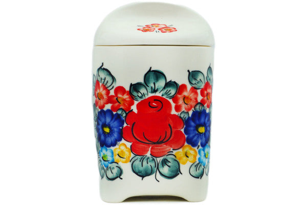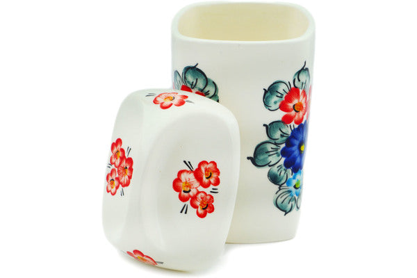 This Little Flower Patch 7" Jar with Lid was handmade and hand decorated in Boleslawiec, Poland by skilled artisans according to old traditional methods. This Polish stoneware is microwave, dishwasher, freezer, and oven safe up to 480°F. It does not contain lead or cadmium. It is part of the Little Flower Patch Collection.