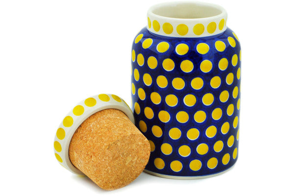 This Yellow Dots 7" Jar with Lid was handmade and hand decorated in Boleslawiec, Poland by skilled artisans according to old traditional methods. This Polish stoneware is microwave, dishwasher, freezer, and oven safe up to 480°F. It does not contain lead or cadmium. It is part of the Yellow Dots Collection.