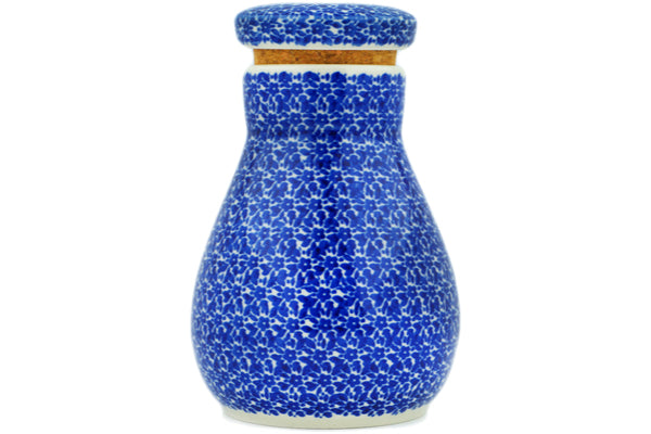 This Blue Bounty 8" Jar with Lid was handmade and hand decorated in Boleslawiec, Poland by skilled artisans according to old traditional methods. This Polish stoneware is microwave, dishwasher, freezer, and oven safe up to 480°F. It does not contain lead or cadmium. It is part of the Blue Bounty Collection.
