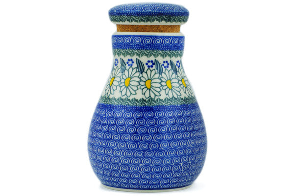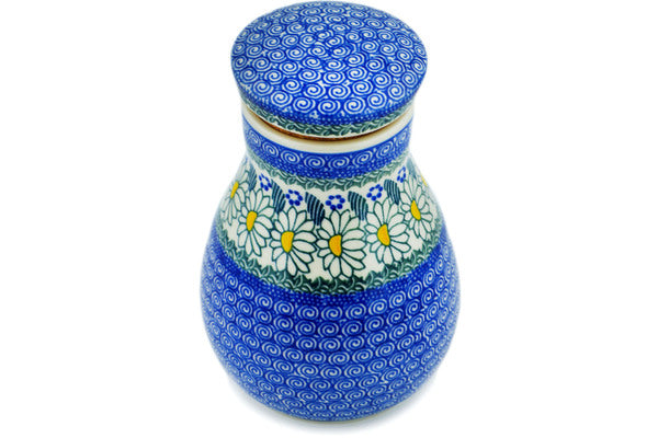 This Crazy Daisy 8" Jar with Lid was handmade and hand decorated in Boleslawiec, Poland by skilled artisans according to old traditional methods. This Polish stoneware is microwave, dishwasher, freezer, and oven safe up to 480°F. It does not contain lead or cadmium. It is part of the Crazy Daisy Collection.