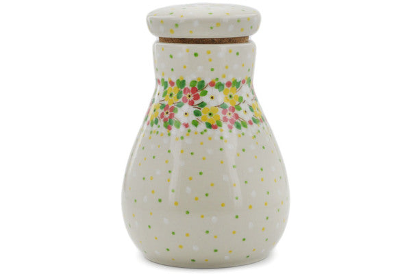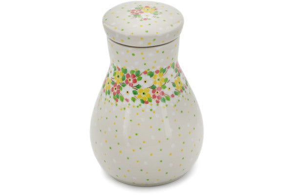 This Blossom Sprinkle 8" Jar with Lid was handmade and hand decorated in Boleslawiec, Poland by skilled artisans according to old traditional methods. This is a Polish pottery Signature Unikat, which means that it has been hand painted with both sponges and brushes and it is signed by the artist who painted it. Unikat pieces are the most intricate works of art. Larger Unikat items take hours of very careful work to finish. This Polish stoneware is microwave, dishwasher, freezer, and oven safe up to 480°F. It does not contain lead or cadmium. It is part of the Blossom Sprinkle Collection.
