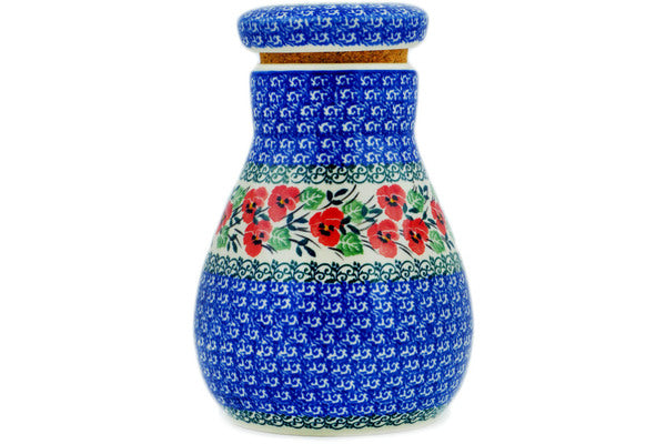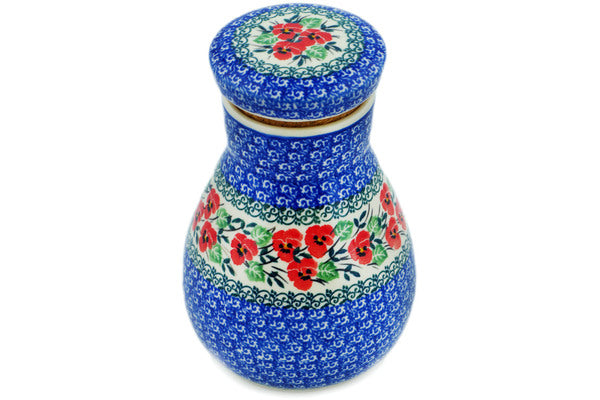 This Red Pansy 8" Jar with Lid was handmade and hand decorated in Boleslawiec, Poland by skilled artisans according to old traditional methods. This Polish stoneware is microwave, dishwasher, freezer, and oven safe up to 480°F. It does not contain lead or cadmium. It is part of the Red Pansy Collection.
