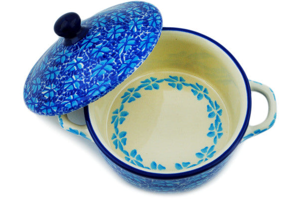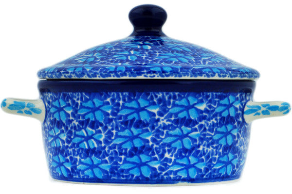 This Deep Into The Blue Sea 5" Jar with Lid and Handles was handmade and hand decorated in Boleslawiec, Poland by skilled artisans according to old traditional methods. This Polish stoneware is microwave, dishwasher, freezer, and oven safe up to 480°F. It does not contain lead or cadmium. It is part of the Deep Into The Blue Sea Collection.
