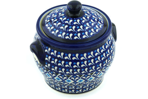 This Blue Diamond Dream 6" Jar with Lid and Handles was handmade and hand decorated in Boleslawiec, Poland by skilled artisans according to old traditional methods. This Polish stoneware is microwave, dishwasher, freezer, and oven safe up to 480°F. It does not contain lead or cadmium. It is part of the Blue Diamond Dream Collection.