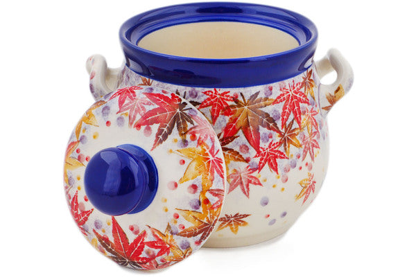 This Perfect Autumn 6" Jar with Lid and Handles was handmade and hand decorated in Boleslawiec, Poland by skilled artisans according to old traditional methods. This is a Polish pottery Signature Unikat, which means that it has been hand painted with both sponges and brushes and it is signed by the artist who painted it. Unikat pieces are the most intricate works of art. Larger Unikat items take hours of very careful work to finish. This Polish stoneware is microwave, dishwasher, freezer, and oven safe up to 480°F. It does not contain lead or cadmium. It is part of the Perfect Autumn Collection.