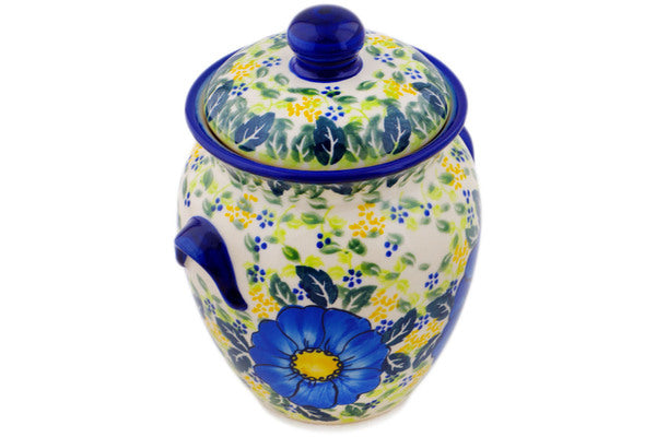 This Blue Happy Fields 7" Jar with Lid and Handles was handmade and hand decorated in Boleslawiec, Poland by skilled artisans according to old traditional methods. This is a Polish pottery Signature Unikat, which means that it has been hand painted with both sponges and brushes and it is signed by the artist who painted it. Unikat pieces are the most intricate works of art. Larger Unikat items take hours of very careful work to finish. This Polish stoneware is microwave, dishwasher, freezer, and oven safe up to 480°F. It does not contain lead or cadmium. It is part of the Blue Happy Fields Collection.
