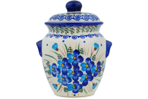 This Elegant Garland 7" Jar with Lid and Handles was handmade and hand decorated in Boleslawiec, Poland by skilled artisans according to old traditional methods. This Polish stoneware is microwave, dishwasher, freezer, and oven safe up to 480°F. It does not contain lead or cadmium. It is part of the Elegant Garland Collection.