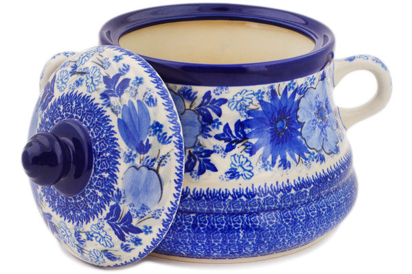 This Blue Wildflower Patch 9" Jar with Lid and Handles was handmade and hand decorated in Boleslawiec, Poland by skilled artisans according to old traditional methods. This is a Polish pottery Signature Unikat, which means that it has been hand painted with both sponges and brushes and it is signed by the artist who painted it. Unikat pieces are the most intricate works of art. Larger Unikat items take hours of very careful work to finish. This Polish stoneware is microwave, dishwasher, freezer, and oven safe up to 480°F. It does not contain lead or cadmium. It is part of the Blue Wildflower Patch Collection.
