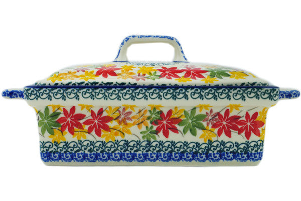 This Fall Vibes 9" Jar with Lid and Handles was handmade and hand decorated in Boleslawiec, Poland by skilled artisans according to old traditional methods. This Polish stoneware is microwave, dishwasher, freezer, and oven safe up to 480°F. It does not contain lead or cadmium. It is part of the Fall Vibes Collection.