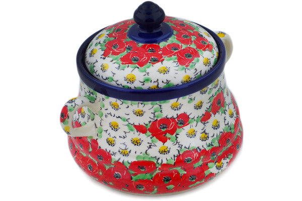 This Spring Blossom Harmony 9" Jar with Lid and Handles was handmade and hand decorated in Boleslawiec, Poland by skilled artisans according to old traditional methods. This is a Polish pottery Signature Unikat, which means that it has been hand painted with both sponges and brushes and it is signed by the artist who painted it. Unikat pieces are the most intricate works of art. Larger Unikat items take hours of very careful work to finish. This Polish stoneware is microwave, dishwasher, freezer, and oven safe up to 480°F. It does not contain lead or cadmium. It is part of the Spring Blossom Harmony Collection.