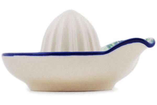 This Peach Fan Fare Small Juice Reamer was handmade and hand decorated in Boleslawiec, Poland by skilled artisans according to old traditional methods. This is a Polish pottery Signature Unikat, which means that it has been hand painted with both sponges and brushes and it is signed by the artist who painted it. Unikat pieces are the most intricate works of art. Larger Unikat items take hours of very careful work to finish. This Polish stoneware is microwave, dishwasher, freezer, and oven safe up to 480°F. It does not contain lead or cadmium. It is part of the Peach Fan Fare Collection.