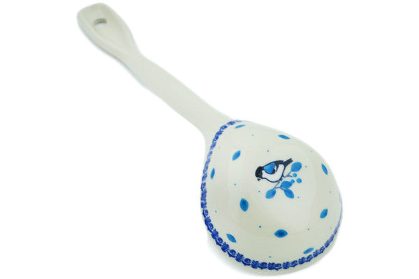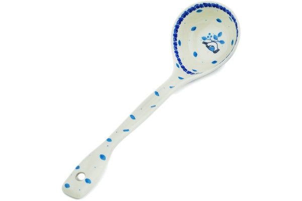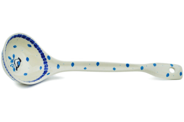 This Winter Sparrow 13" Ladle was handmade and hand decorated in Boleslawiec, Poland by skilled artisans according to old traditional methods. This Polish stoneware is microwave, dishwasher, freezer, and oven safe up to 480°F. It does not contain lead or cadmium. It is part of the Winter Sparrow Collection.