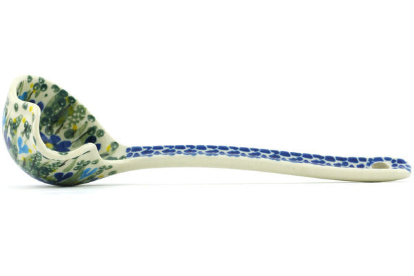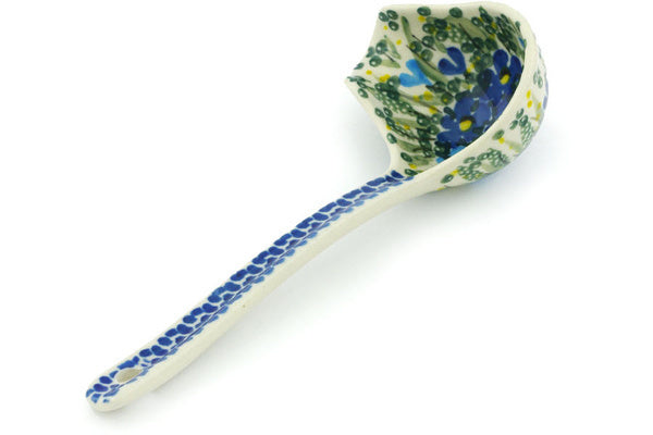 This Blue Violet Garden 7" Ladle was handmade and hand decorated in Boleslawiec, Poland by skilled artisans according to old traditional methods. This is a Polish pottery Signature Unikat, which means that it has been hand painted with both sponges and brushes and it is signed by the artist who painted it. Unikat pieces are the most intricate works of art. Larger Unikat items take hours of very careful work to finish. This Polish stoneware is microwave, dishwasher, freezer, and oven safe up to 480°F. It does not contain lead or cadmium. It is part of the Blue Violet Garden Collection.