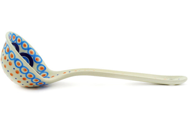 This Modern Peacock 9" Ladle was handmade and hand decorated in Boleslawiec, Poland by skilled artisans according to old traditional methods. This Polish stoneware is microwave, dishwasher, freezer, and oven safe up to 480°F. It does not contain lead or cadmium. It is part of the Modern Peacock Collection.